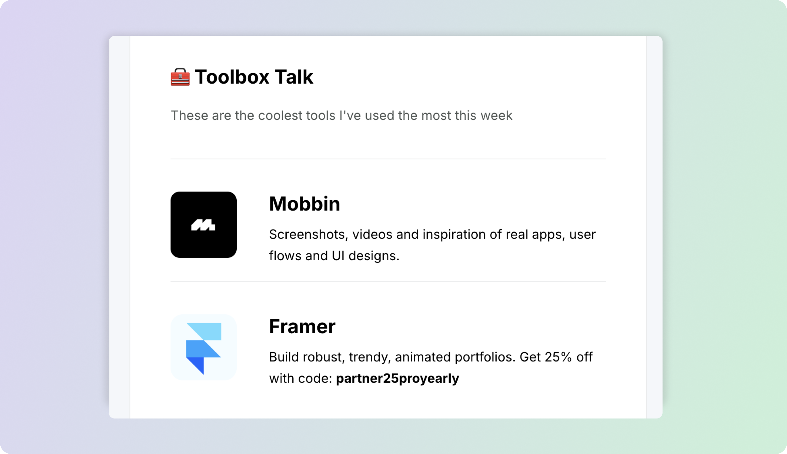 We'd love to feature your tool, resource, product, service or brand and help you reach thousands of motivated designers and creatives. If you have any questions before booking, feel free to send us a message with the details about your company or product and we'll get back to you within the day.